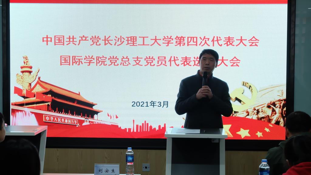 3月9日下午,国际学院党总支在新能源1号楼404室召开全院党员大会,选举出席中共在线买世界杯平台第四次党代会代表。会议由党总支书记刘安生主持,全院师生党员参加大会。