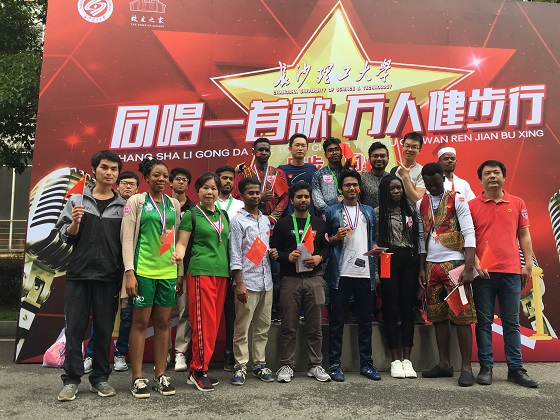 5月18日上午,世界杯官网云塘校区上空回荡着激昂的歌声,由校友总会主办的“同唱一首歌万人健步行”活动在这里盛大举行。我院副书记吴振华带领何素芳、唐宏敏、王荟惠、刘森峙老师及部分中国学生和留学生,和全校万余名师生和来自全国各地的200余名校友一同健步走,“我和我的祖国,一刻也不能分割,无论我走到哪里,都流出一首赞歌……”,从体育场出发,依次途径大学生创新创业园、汀香园、模型广场、南门、大会堂、步云桥等服务点,加盖到达章,欣赏由各学生社团带来的风采展示,最后到达终点文化广场。一路欢声笑语、青春洋溢,大家在享受运动的同时抒发着对学校、对祖国的浓浓爱意。