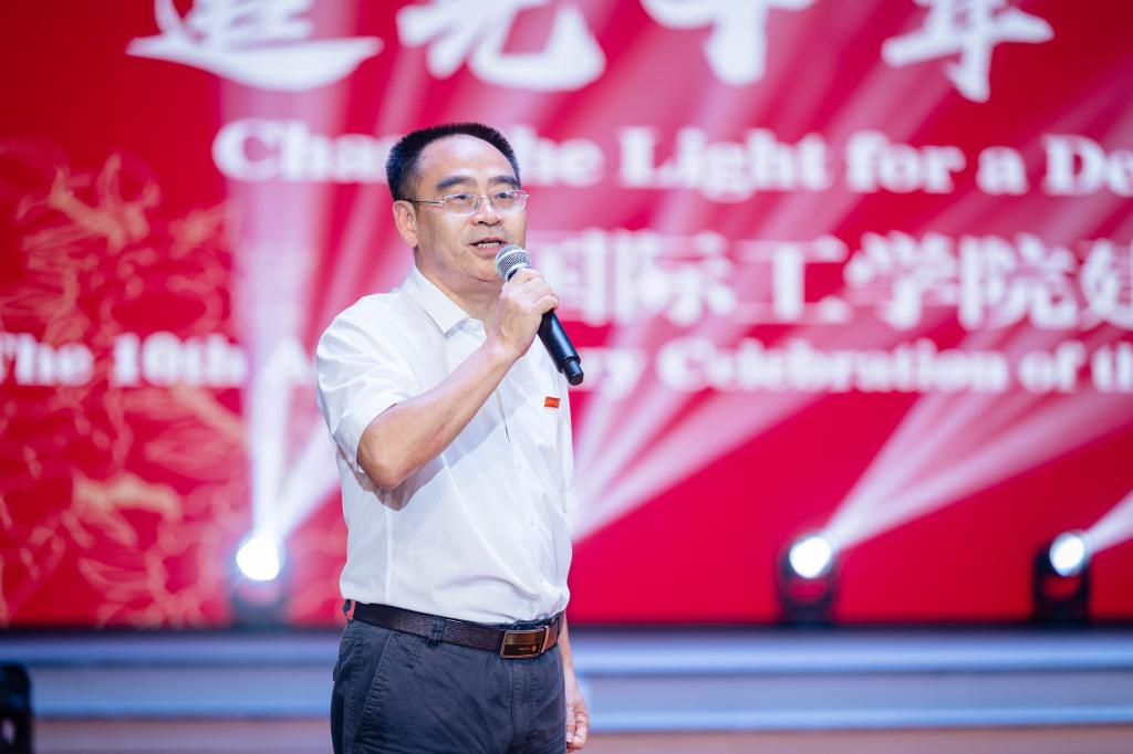毕业典礼恰逢建院十周年之际,国际工学院党委书记黄自力在致辞中回顾学院发展历史,感谢每一位为学院建设倾注心血的师生,并祝贺2025届全体毕业生毕业快乐!