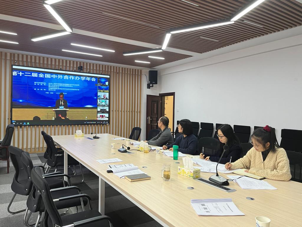2021123日,第十二届全国中外合作办学年会在线上举行。年会由教育部国际司为会议支持机构,厦门大学中外合作办学研究中心、贵州省教育厅、中国高等教育学会中外合作办学研究分会共同主办,贵州大学承办。国际学院院长吴迪龙、副书记兼副院长乔法光、副院长秦卫星、党政综合办公室主任黄文卫以及教务办全体老师参加年会。本次年会主题为“世界大变局下的中外合作办学:以高质量发展助推新发展格局构建”。