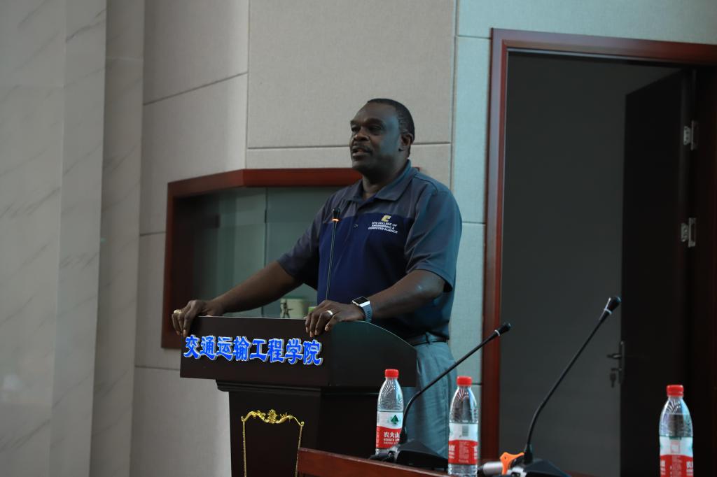 紧接着Owino教授对田纳西大学查塔努加分校土木工程专业的人才培养目标,课程设置以及该项目赴美学生第四学年教学安排等方面进行了详细介绍,高度赞扬了项目2015和2016级两批派出学生在校的综合表现,他希望未来能有越来越多的优秀学子进入UTC学习深造,为项目的发展增光添彩。同时他也结合自身的求学经历鼓励大家:常怀感恩之心,勇于尝试敢于挑战,永不放弃对梦想的追求。