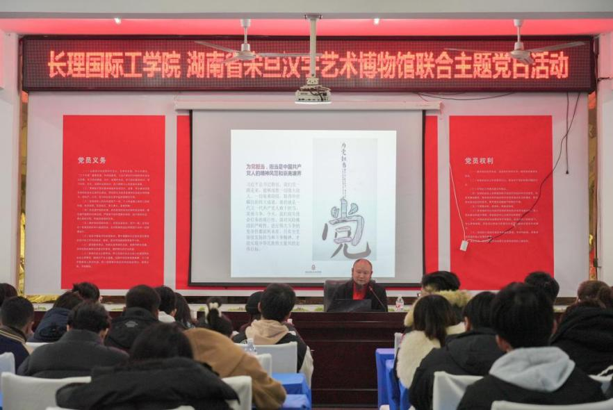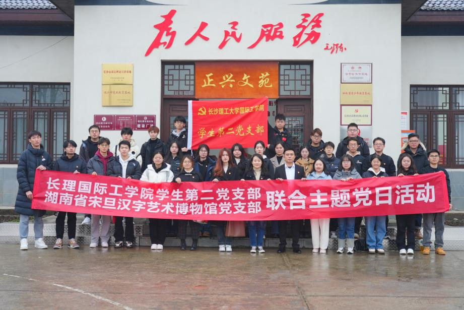 (3月5日,国际工学院学生第二党支部联合湖南省宋旦汉字艺术博物馆在长沙望城团山湖正兴文苑开展主题党日活动)