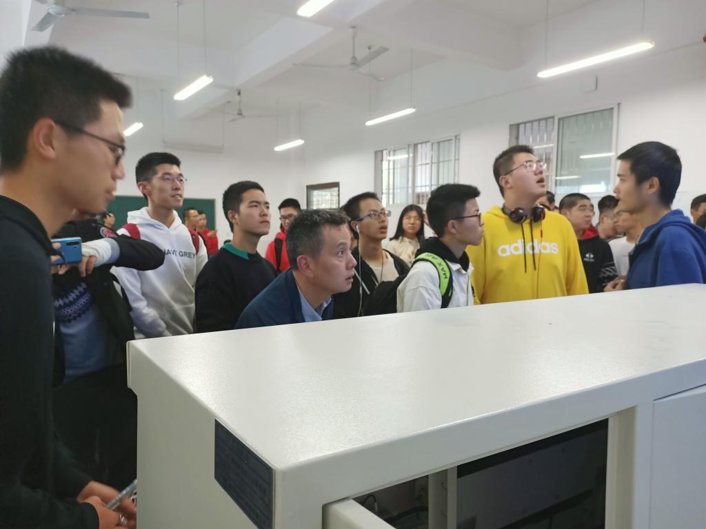 在实验室内,马均老师带领学生们参观了太阳能板等设备,王伟平老师为学生介绍了直流电机的运行流程等,唐欣老师也向大家演示了微电网运行监控与能量管理系统的运行。在老师的详细介绍下,学生们在实验室里了解了电机等设备的零件名称及运行流程。在介绍过程中学生们紧紧跟随着讲解的老师,在老师的讲解中不断发掘着自己的兴趣。