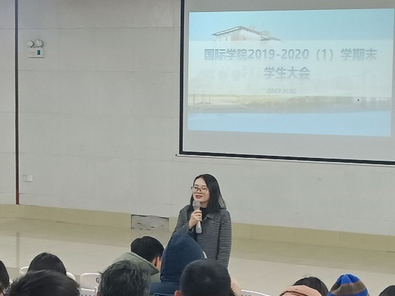 为进一步增强学生安全意识和自主学习意识,提升学生英语学习兴趣,1月2日下午,国际学院全体学生安全教育及学业指导大会在文科楼圆厅召开。学院党总支副书记兼副院长张锐、学工办全体辅导员及全体学生参加。