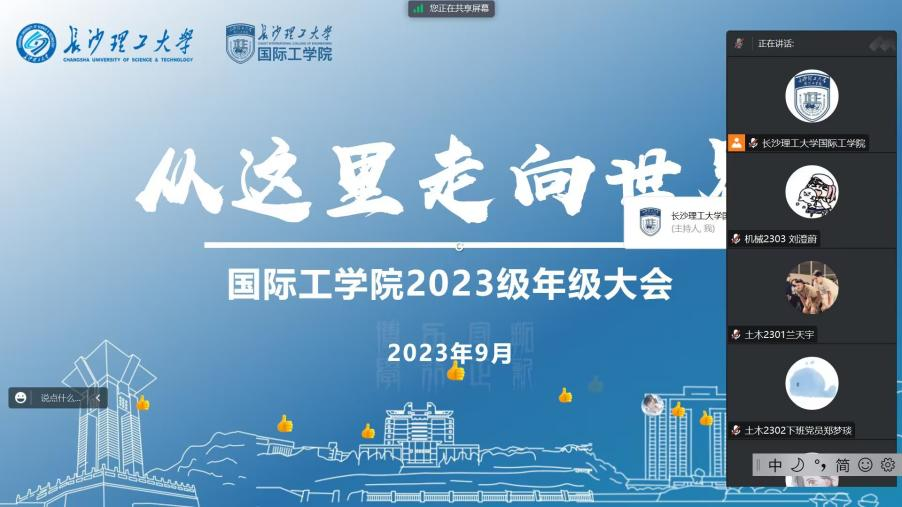 9月23日上午,国际工学院线上召开2023级新生年级大会。学院党总支副书记兼副院长乔法光,新生辅导员马玉文、吴紫怡出席会议,2023级全体学生参会。