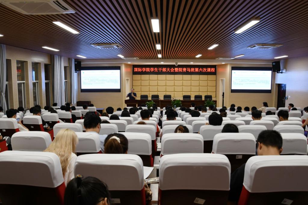 5月13日晚,国际学院在理科楼A200组织学生干部培训,由学院领导为院“青马班”学员授课。国际学院院长吴迪龙、院党总副书记兼副院长张锐出席,学院学工办全体辅导员、学院全体学生党员、团委学生干部及各班级主要干部代表参加培训。会议由学院学工办主任、团委书记马玉文主持。