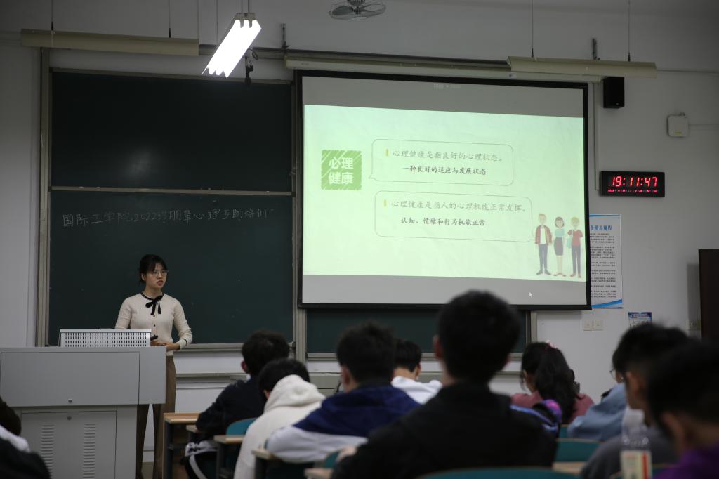 “心理健康是指良好的心理状态,是指人的心理机能能正常发挥。”为引导朋辈心理互助员提供更精细、更温暖的帮助,促使同学们以更加积极健康的心态面对学习和生活,4月10日晚,国际工学院特邀心理健康教育中心专职教师李子萱为2022级朋辈心理互助员讲授上岗培训第二课——“大学生常见精神障碍的症状和识别”。