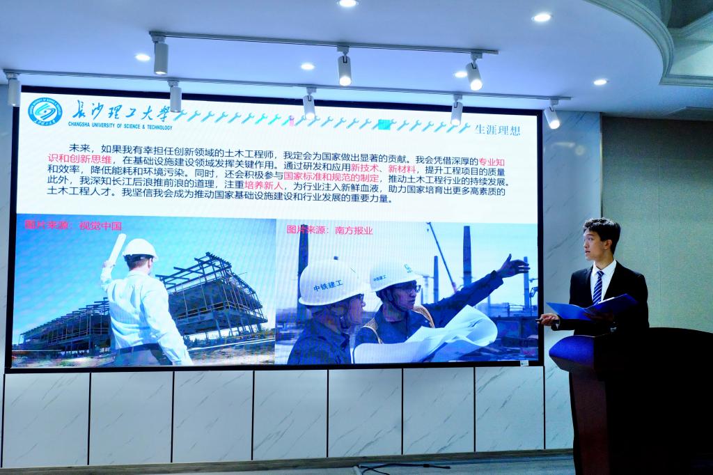 本次大赛分为成长赛道和就业赛道,答辩选手从职业目标、岗位胜任力、学习实践行动、动态调整等多个维度全面阐述自身的职业生涯规划。其中,土木2202班张小川结合丰富的学生工作和学科竞赛经历,合理设定水利工程师的职业目标,立志尽青春之力,予国家之所需;机械2201班胡莹莹着重把握个人所学专业、能力及兴趣等特点,深刻剖析机械工程师目标岗位所需综合素质,展现自身的发展潜力;电气2302班马浩峪以电路老师在课堂上的提问作为切入点,力争在“双碳政策”背景下,投身于电力新能源研究岗位。评委老师结合答辩选手的求职简历、生涯发展报告和风采展示,提供了诸多实用性建议。