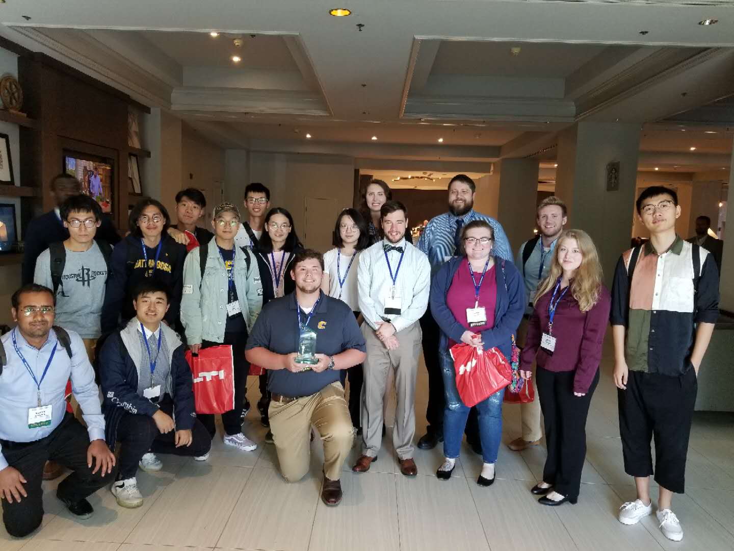2018年9月16至18号,在美国田纳西州首府纳什维尔举办的田纳西州土木工程大会上,田纳西大学查塔努加分校(UTC)土木工程系教授Fomunung带领在线买世界杯平台国际学院2015级中外合作办学项目(土木工程专业)10名赴美学习的学生和7名UTC学生组成的参赛队伍取得该大会竞赛第一名的好成绩,获得美国土木工程协会授予的冠军奖杯。田纳西州土木工程大会是该州的一项州级竞赛,每年举办一次,将专业工程师和工程专业的学生聚集在一起进行技术展示。该会2018年的大会主题为“创造一个更健康、安全、美好的世界”。本次竞赛由土木工程知识问答和学科知识展示两部分组成,涵盖水资源、环境工程、交通工程、岩土工程和结构等学科知识。本次赛事的参赛队伍除田纳西大学查塔努加分校外还包括田纳西州的所有工程类院校,分别是孟菲斯大学、基督教兄弟大学、利普斯科姆大学、田纳西大学诺克斯维尔大学、田纳西理工大学、田纳西州立大学、范德比尔特大学和田纳西大学马丁分校。