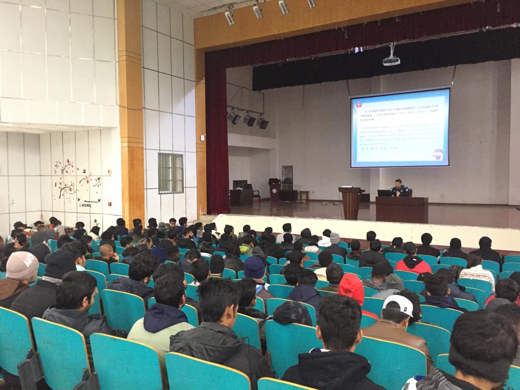 讲座上,陈军就《中华人民共和国出境入境管理法》、宗教管理和其他注意事项,从入境出境、居留、法律责任、驾车等方面,结合相关事例,为同学们进行了详细的说明、讲解和提醒,涉及到同学们在中国合法居留、合法生活、合法学习的方方面面。并要求留学生严格遵守我国的法律法规与学校的各项规章制度,做一位知法、懂法、守法的留学生。