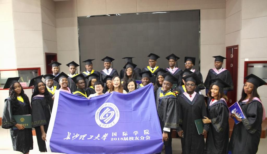 7月12日上午,2018届赤道几内亚来华留学生毕业典礼暨学位授予仪式在云塘校区工二B区多功能厅隆重举行。副校长蒋昌波、校党委委员兼国际学院党委书记付嫦娥、国际交流处处长吴迪龙、校友中心副主任郑延恒、土木工程学院副院长陈伏彬、经济与管理学院副院长谢朝华,留学生资助方中国路桥工程有限责任公司董事、总会计师董付堂、人力资源部副总经理宫海龙、人力资源部许囡,国际化人才培养实习基地湖南路桥建设集团有限责任公司工会主席孙纳英、人力资源部副部长陈新伟出席。参加典礼的还有国际学院国际学生工作办公室全体老师、2018届赤道几内亚毕业生的亲朋好友以及黑山孔子学院到世界杯官网参加夏令营的全体营员等。毕业典礼由国际学院院长陈瑜主持。