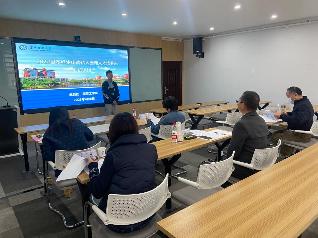 2023年4月6日下午,由教务处副处长蒋菲组织来自教务处、电气、数统、物电、外语、国际等职能部门与教学院的10名专家,召开了2022级创新班转入面试选拔工作会议。本次会议分两组在云塘校区新能源大楼1栋404和416教室同步进行,由教务处副处长邓丰、电气与信息工程学院教授周腊吾分别担任面试专家组组长,对申请转入创新人才培养班初审合格的15名同学进行了现场面试。同学们首先以中英双语进行了精彩的自我介绍,简要陈述了申请转入创新班理由以及未来学业规划。随后专家们从思想道德素质、知识素养、语言表达能力、分析解决问题能力、社会实践经验、创新精神与能力、专业发展规划等方面对学生进行综合评价,以百分制给出面试成绩。经转专业领导小组讨论,确定拟录取学生名单,并完成了学院官网公示及材料上报等系列工作。3位来自数统、电气、国际(土木创新班)3个学院的2022级优秀本科生最终获得入选电气工程及其自动化创新人才培养班学习资格。