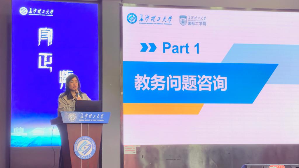随后,由教务办余志介绍教学相关事宜。她详细说明了考试、缓考、补考、重修、免听等事务的办理流程,提醒同学们及时核查学分完成情况,严格把握毕业论文(设计)时间节点,主动与指导教师沟通,确保符合毕业要求。