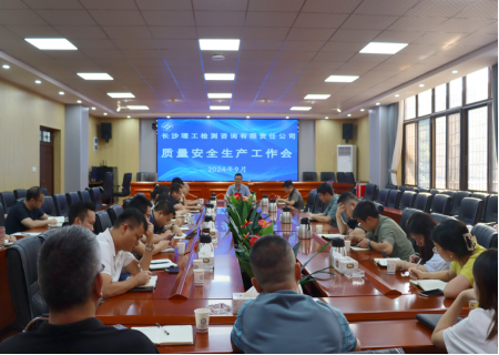 9月29日上午,检测公司召开质量安全工作会议。总经理任宇主持会议并讲话,公司领导班子各部门(项目)负责人、技术负责人及机关全体人员参加会议。