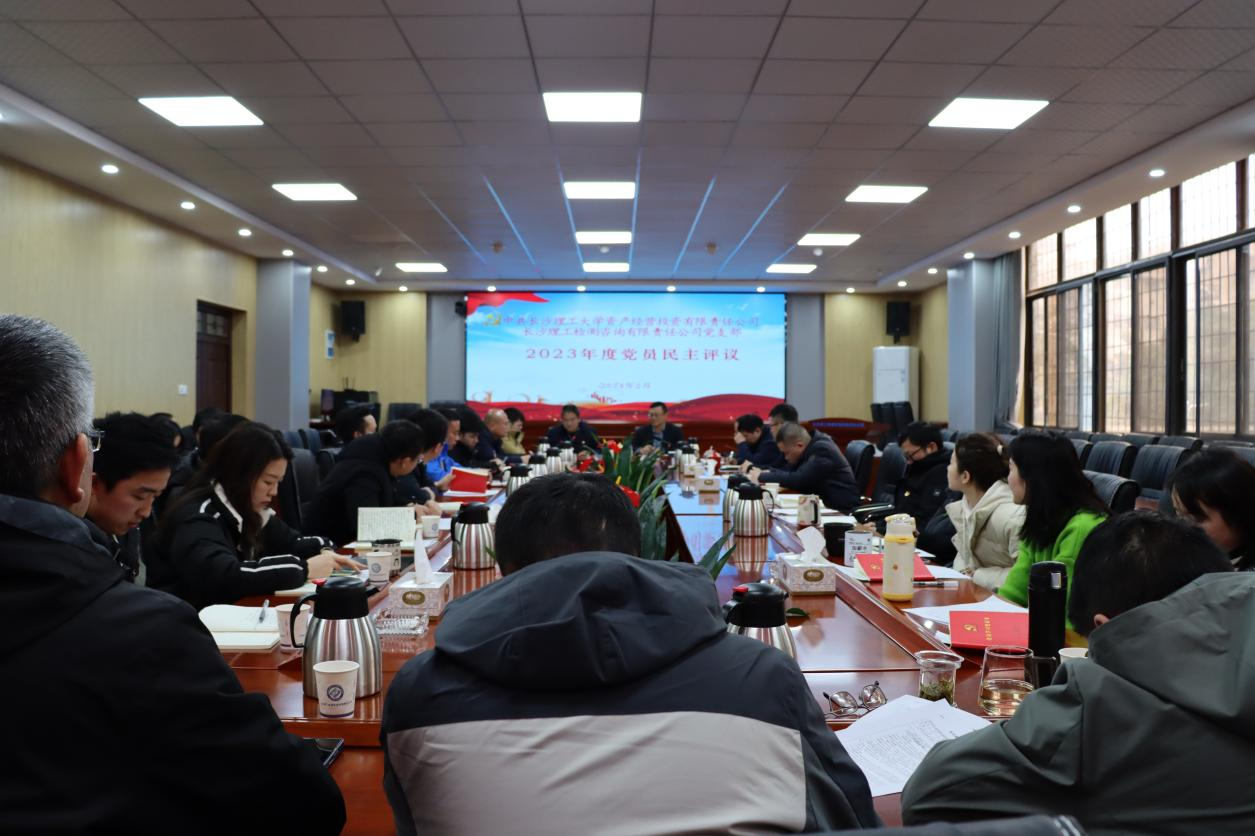 2024年3月1日,长沙理工检测咨询有限责任公司党支部在二楼会议室召开全体党员大会,进行2023年度民主评议党员工作。投资公司党总支组织员李志源莅会指导并进行了点评。支部全体党员参加会议,发展对象、积极分子列席会议。会议由支部书记任宇主持。