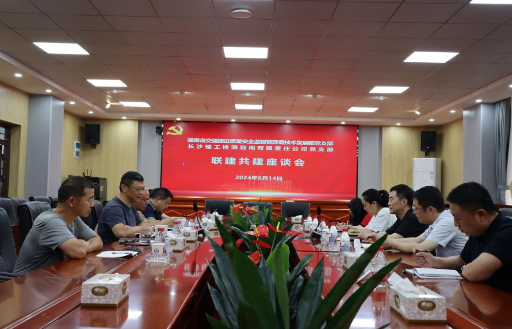 为充分发挥党建引领作用,推进基层党组织结对共建工作走深走实,6月14日,省交通建设质量安全监督管理局技术发展部党支部与长沙理工检测咨询有限责任公司党支部开展党建结对共建活动,进行座谈交流。省交通质安局党委委员、副局长沈文出席会议,局技术发展部党支部书记胡贵华、检测公司党支部书记任宇带领支部党员代表参加。