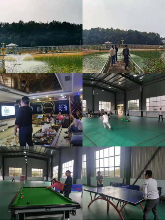 短暂的拔河活动结束,随后开展了自由活动。有的在垂钓园钓鱼、有的在拍庄园美景、有的在练歌房唱歌、有的在球场打球。