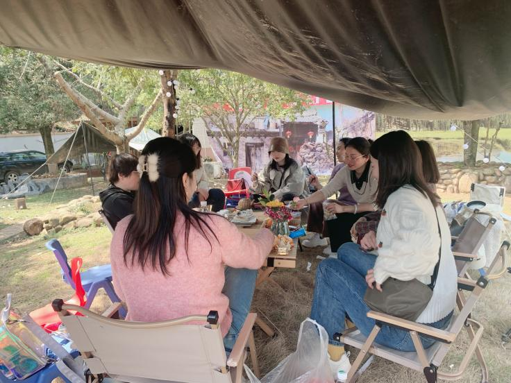 闲暇午后,大家在天幕下围炉而坐,享受静谧时光。现场布置温馨浪漫,在鲜花簇拥下,在茶香袅袅中,大家闲话趣事,畅谈人生,不时传出一阵阵欢声笑语,好不惬意。