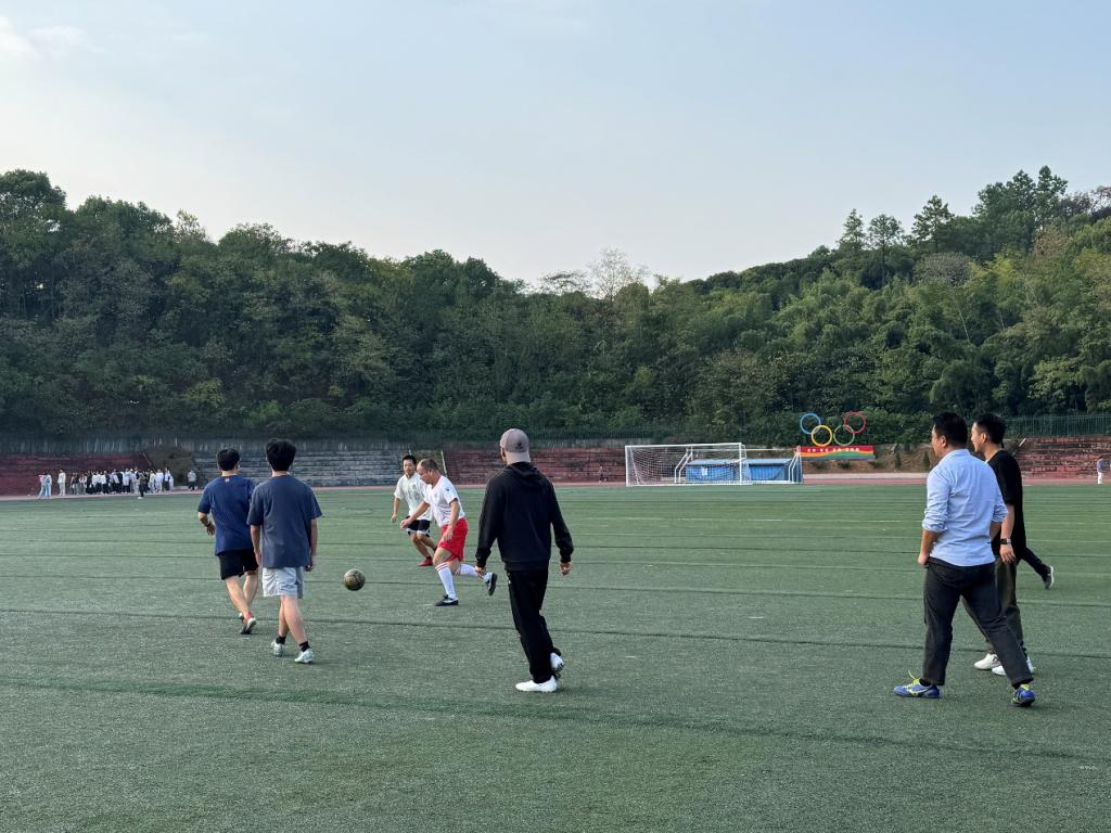 绿茵场上高潮迭起,精彩场面不断涌现。不论是教师队巧妙的战术配合、极具威胁的射门,还是学生队犀利的个人突破,都引得场上球员的阵阵欢呼与掌声,现场气氛持续升温。整场比赛始终在快节奏与高强度对抗中进行,双方都展现出良好的体育精神和竞技水平。最终,在一片喝彩声中,这场精彩纷呈的师生足球友谊赛顺利结束,充分体现了“友谊第一,比赛第二”的宗旨。