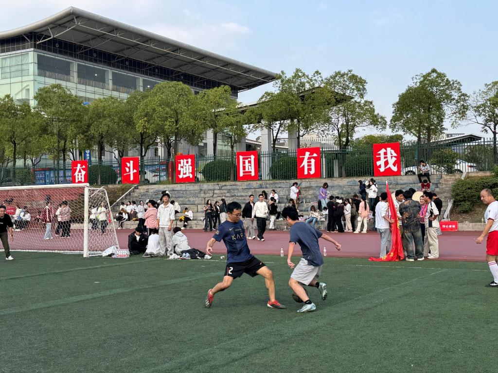 比赛在热烈的气氛中拉开战幕,双方迅速进入状态,展开激烈较量。教师队斗志昂扬、配合默契,教师队进入状态较快,凭借娴熟的脚下技术和默契的传接配合,屡屡组织起有威胁的进攻。学生队则展现迅速的跑动和积极的拼抢意识,脚下盘带、边路突破等场面接连上演,比赛前半段,学生队火力全开,展现出青春的活力与冲劲。