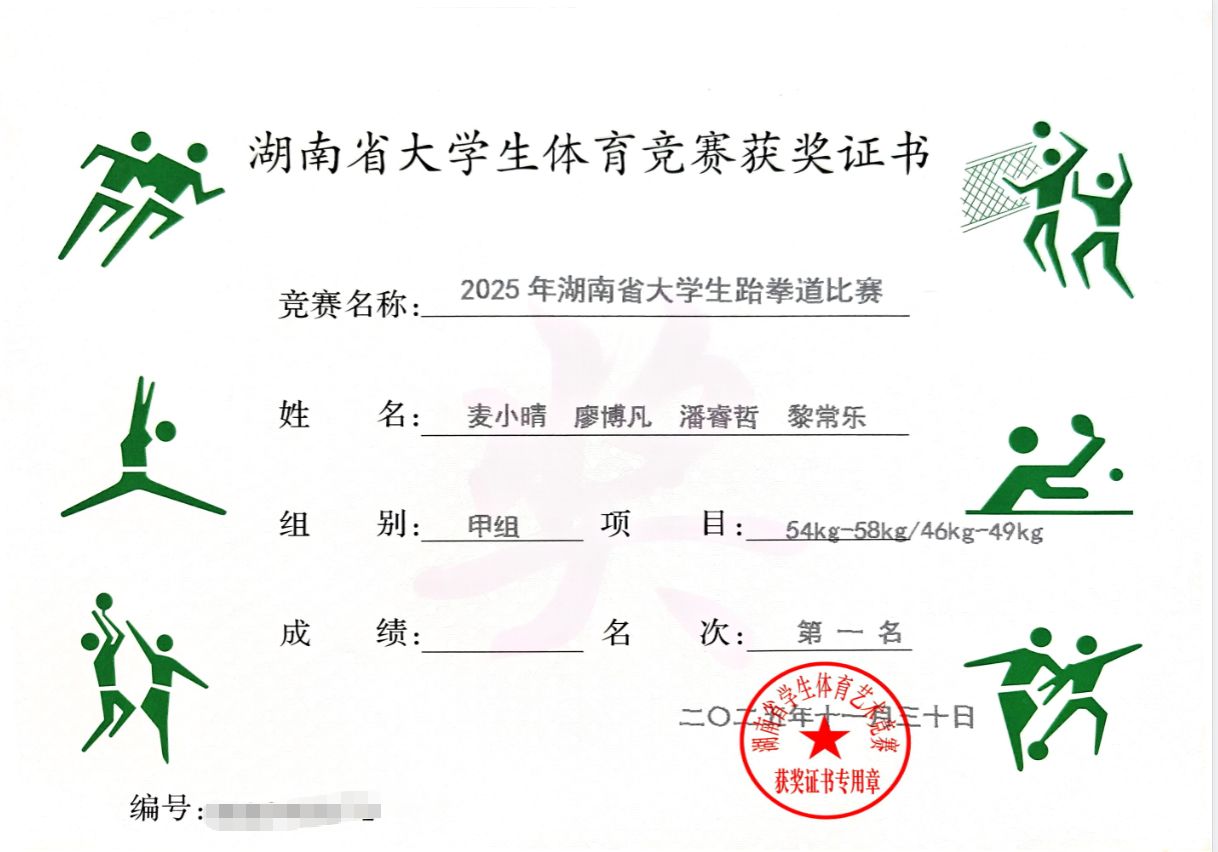 2025年12月3日,2025年湖南省大学生跆拳道比赛在湖南警察学院隆重闭幕。本届赛事云集全省数十所高校的跆拳道健儿,赛场角逐激烈,赛事精彩纷呈。在线买世界杯平台航空工程学院地信2501班麦小晴、地信2301班黎常乐凭借精湛技艺、顽强斗志与优良体育风貌奋勇拼搏,最终脱颖而出斩获多项佳绩。