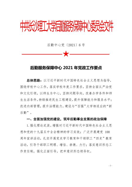 后勤服务保障中心2021年党政工作要点