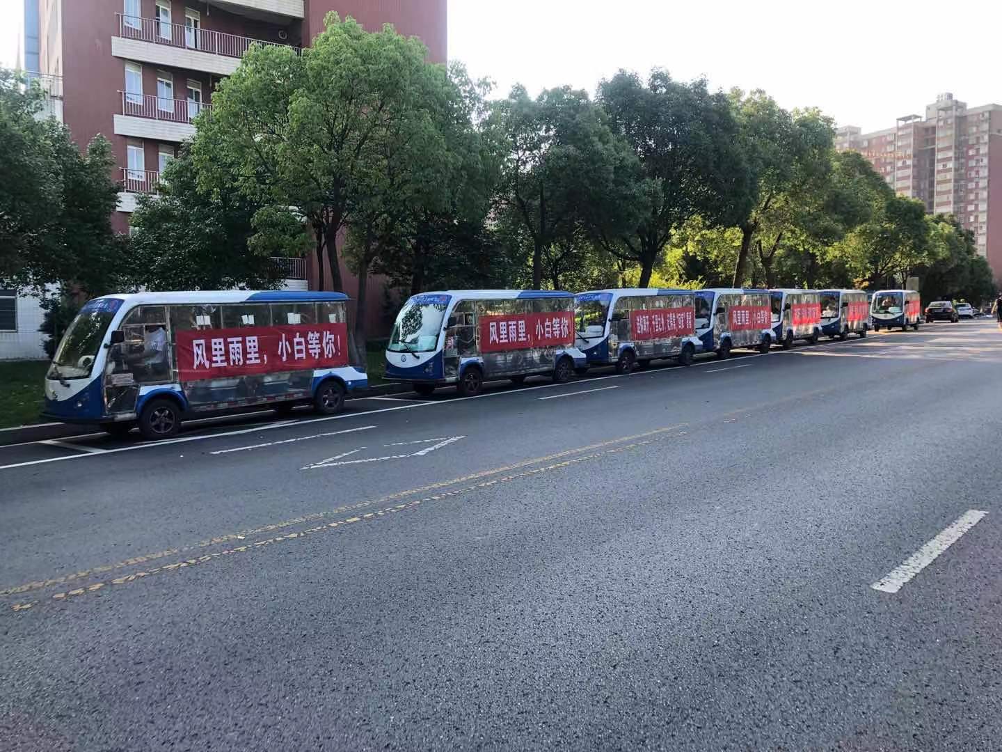 除了动员党员,支部更是进一步把“办实事”落实到为师生服务的细节上。6月26、27两日是毕业生离校的高峰期,承担运送毕业生离校任务的校观光车队免费为师生服务。虽是炎炎夏日,但车身上醒目的“送你离开,千里之外,常‘回家’看看”,以及“风里雨里,‘小白’等你”让毕业生们感慨良多。