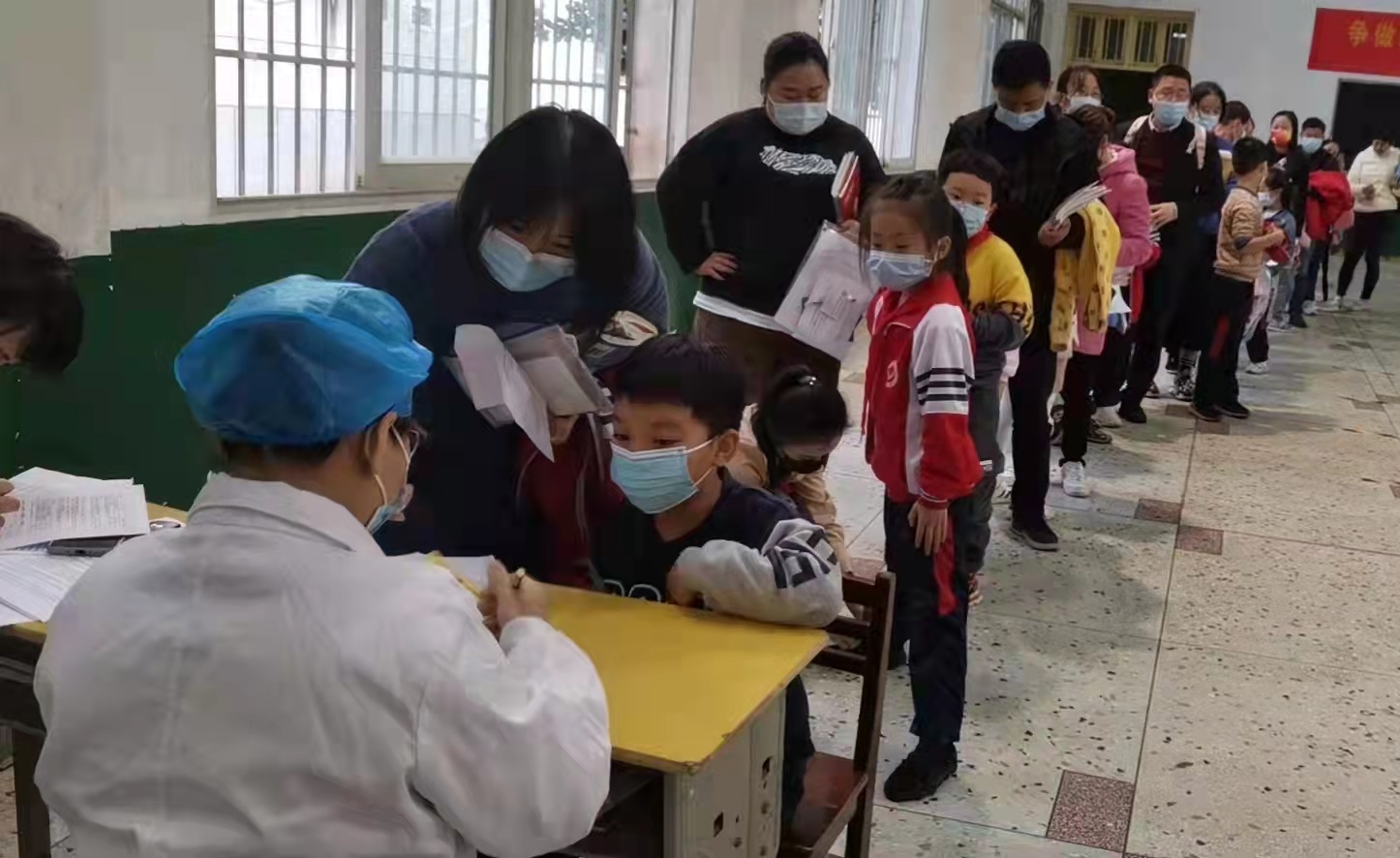 11月19日子弟学校组织符合接种条件的学生在学校接种新冠疫苗。接种前,根据区教育局和疾控中心的要求,子校制定了详细的接种方案,每个环节责任到人,环环相扣,确保接种工作顺利进行。11月22日幼儿园组织幼儿到社区医院进行接种。全体党员发挥先锋模范作用,带头做好疫苗接种的组织和服务工作,确保子校和幼儿园的接种工作安全有序地进行,为校园安全树立起了一道安全的屏障。