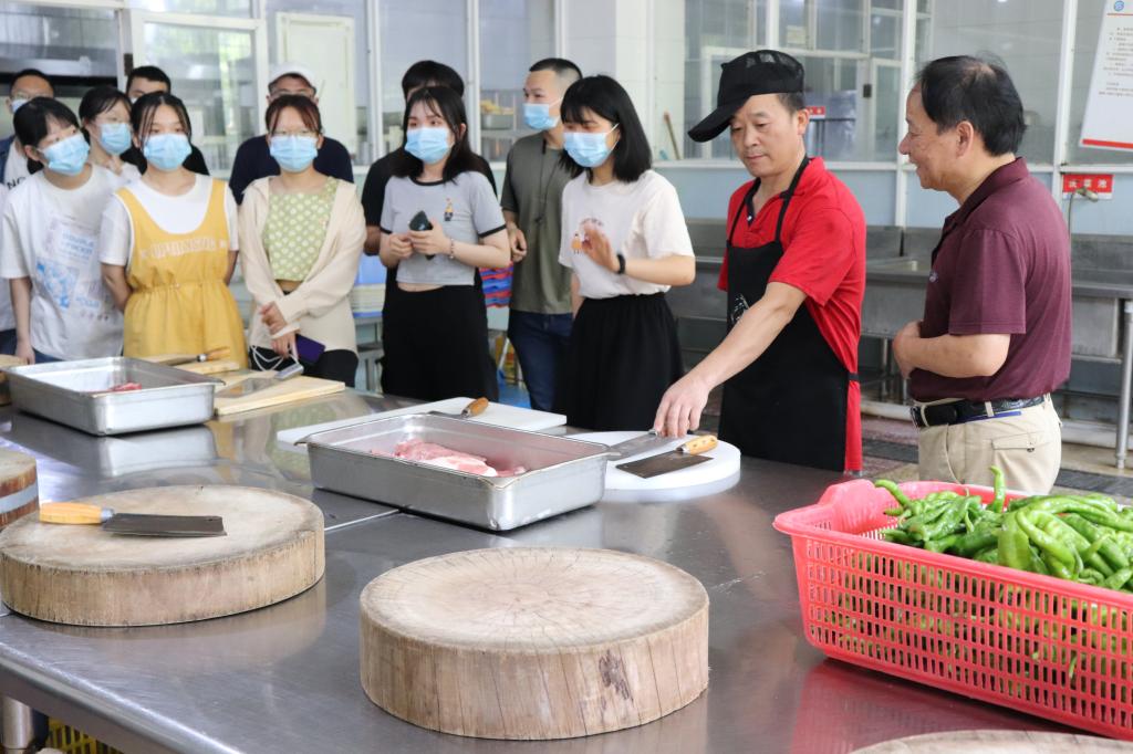 2021年6月8日下午,后勤餐饮部在汀香园一楼美食与生活实践基地组织开展了“美食与生活”系列活动——学做红案,推进“服务育人”文化建设实践项目走深走实。20多名大学生走进食堂,跟着“师傅”学习实践菜肴烹制。