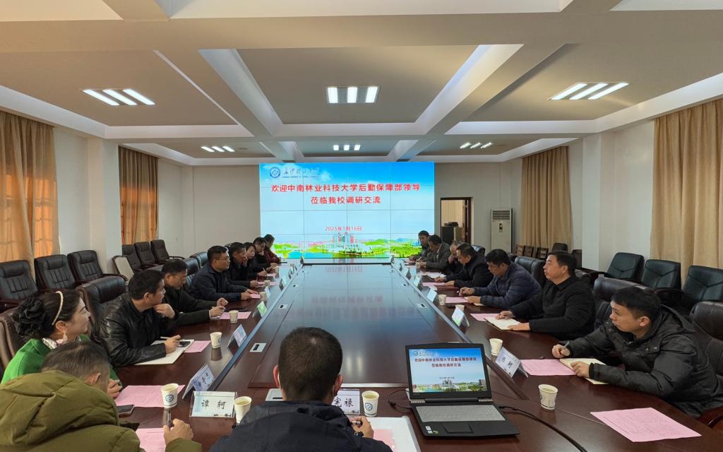 1月16日上午,中南林业科技大学后勤保障部部长兼保卫部部长张双利一行来世界杯官网调研交流。后勤中心班子成员及餐饮、物业、水电及校医院部门负责人参加座谈交流。