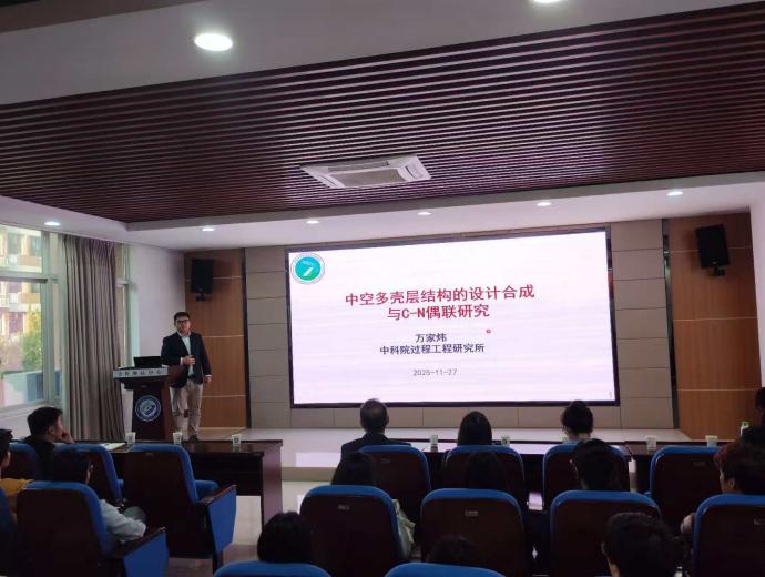 2025年11月27日下午,应在线买世界杯平台化学与医药工程学院邀请,中国科学院过程工程研究所万家炜研究员莅临世界杯官网开展学术交流,在新能源大楼3B-310报告厅作了题为"中空多壳层结构的设计合成与C-N偶联研究"的学术报告。报告由学院副院长陈启杰教授主持,学院师生共90余人参加了此次学术报告。