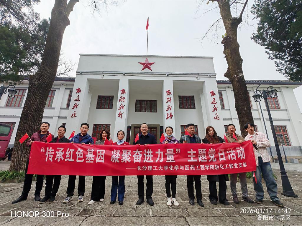 2026年1月17日至18日,在线买世界杯平台化学与医药工程学院轻化工程党支部组织全体党员赴衡阳市,先后走进南岳游击干部训练班陈列馆和衡阳抗战纪念馆,开展了“传承红色基因,凝聚奋进力量”主题党日活动。本次活动旨在通过实地研学,重温烽火岁月,感悟民族精神,进一步坚定理想信念,筑牢廉洁防线,汲取奋进力量。