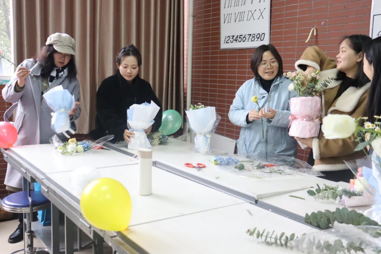 当天下午14时30分,迎着春日的微雨,活动在热烈而温馨的氛围中拉开帷幕。学院党委书记宋刘斌出席并发表了致辞,他高度赞扬了学院女性教职工在教育科研工作中所展现的坚韧不拔与卓越贡献,并代表学院向所有女性表达了深深的敬意与诚挚的节日祝福。活动中,特别邀请的专业花艺师带来了生动有趣的插花艺术课程。花艺师不仅深入浅出地讲解了插花艺术的历史渊源、基本构图法及色彩搭配原则,还现场展示了精湛的插花技艺,引导每一位参与者亲身投入到艺术创作之中。在她的悉心指导下,各位女教职工手持剪刀、轻握花枝,精心构思、巧妙布局,每个人都沉浸在花海中,尽情享受着插花的乐趣,最终完成了一件件富有个性与创意的插花作品,象征着她们在生活中既展现出强大的职业能力,又不失细腻与柔美的独特魅力。