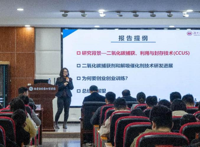 杨荣华教授、刘又年教授、高红霞教授分别在大会上作了精彩报告,分享了各自的最新研究成果。杨荣华教授分享通过精准可控的高分子合成策略,构建具备特定识别与信号放大功能的高分子探针,实现对核酸、蛋白质等生物靶标的高灵敏、高选择性检测;刘又年教授通过精准调控碳载体缺陷与金属活性中心相互作用,构筑出高分散、高稳定碳基加氢催化剂,实现温和条件下芳硝基、CO2等高效选择性加氢转化,为绿色化工与可再生能源存储提供关键催化材料平台与底层创新;高红霞教授围绕燃煤电厂低分压CO2,设计筛选高效胺基吸收剂,通过分子结构调控与工艺耦合,实现低能耗、高循环负荷捕集。三位教授的学术见解,以及在引导研究生培养锐意进取、求真务实的学术精神方面的经验,引起了在场师生的强烈共鸣。
