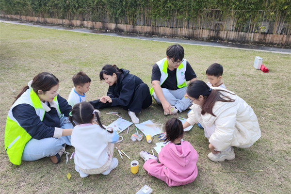 活动现场设置了公园清洁、自然物收集、创意拼图和水质检测等多个环节。在志愿者带领下,孩子们手持垃圾袋仔细捡拾滨江公园内的废弃物,以实际行动守护河岸环境。随后,大家收集落叶、花瓣、松果等自然材料,共同创作生态拼图作品。孩子们踊跃分享创作理念,在动手实践中深化对自然之美的感知,提升生态环境保护意识。