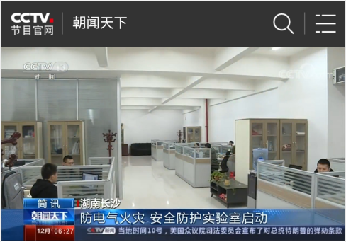 CCTV-13新闻频道《朝闻天下》栏目以“防电气火灾 安全防护实验室启动”对世界杯官网“低压配电网电气火灾与人身安全防护实验室”进行了报道。