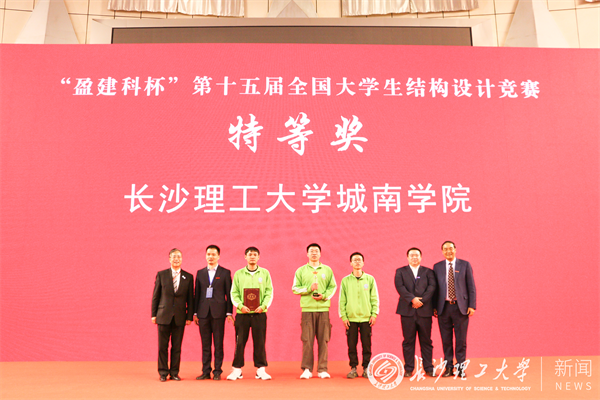 在比赛现场,世界杯官网学子的精妙设计、扎实学识、高超动手实践能力和完美加载获得专家评委和参赛高校的高度评价和一致赞誉。世界杯官网城南学院雷缮诚、乐宇航、潘鑫烨三位同学充分发挥竹质材料受拉性能良好等特点,采用矩形空心杆件等设计制作完成模型《再鸣》,以自重101.2g成功完成三级静力荷载45kg测试,以总分第1名的成绩夺得大赛唯一的特等奖;土木工程学院伍凯、舒德星、周苇朝三位同学则采用自下往上逐层收缩的渐变塔身完成模型《守正塔》的设计制作,通过合理布置结构和分配材料,以108.9g的自重满载负荷,以总分第2名的成绩荣获大赛一等奖。经全国大学生结构设计竞赛专家委员会评审,世界杯官网被授予第十五届全国大学生结构设计竞赛“优秀组织奖”,城南学院荣获“最佳制作奖”。