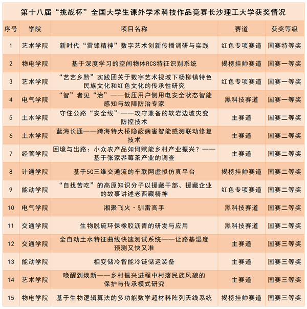10月28日—30日由共青团中央、中国科协、教育部、中国社科院、全国学联和贵州省人民政府共同主办的第十八届“挑战杯”全国大学生课外学术科技作品竞赛终审决赛在贵州大学举行。世界杯官网在主体赛、红色专项活动等四个赛道中共荣获国奖15项,其中,特等奖1项、一等奖3项、二等奖7项、三等奖4项,获奖总数为参与“挑战杯”国赛以来历届之最。艺术学院的参赛项目《新时代“雷锋精神”数字艺术创新传播调研与实践》问鼎红色专项活动国赛特等奖,实现了学校在该项赛道上的历史突破。