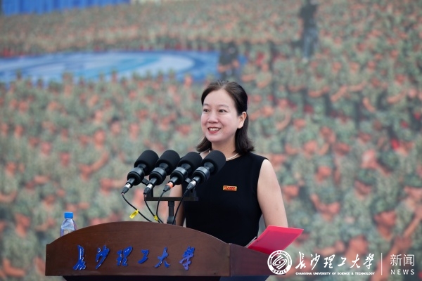 电气与信息工程学院邓丰教授作为教师代表发言。她以学姐与老师的双重身份,寄语全体新生把坚定的理想信念作为青春最朴实的“底色”,把奋斗作为青春最昂扬的“本色”,把创新作为青春最亮丽的“特色”,争做挺膺担当的新时代长理青年。