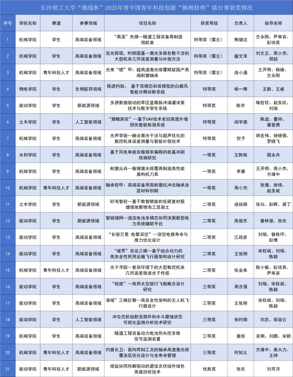 经层层选拔,最终来自全国410余所高校和企业的1950余件优秀作品入围终审决赛。世界杯官网机械学院《“再造”先锋—隧道工程装备再制造领航者》《驭光探瑕,时频固基—激光多路色散干涉的大型机床几何误差测量与补偿方法》《光束“镀”甲:超高速激光熔覆赋能国产高端耐磨轴承》获高端装备领域全国“擂主”(第一名)、特等奖3项;物电学院《稳进判斑:基于双模态和双模型的白癜风智能分期诊断系统》在生物医药领域、能动学院《多源数据驱动的旱区蓝莓脉冲滴灌决策技术与数字孪生系统》在新能源领域、土木学院《“慧瞰房安”—基于UAV技术老旧房屋外墙损伤智能检测系统》在人工智能领域、机械学院《光声孪驱—融合激光干涉与超声优化的数控机床误差测量与智能补偿技术》在高端装备领域分别获特等奖;水利学院《基于风电单桩自振频率偏移的桩基冲刷预测研究》等3个项目获一等奖;土木学院《砂海智砼—基于数智赋能的低碳复材筋增强地聚物海工混凝土》等5个项目获二等奖;能动学院《“轻旅”—商用太空旅行飞船概念设计研究》等5个项目获三等奖;能动学院《熔盐协同热解驱动的退役光伏组件绿色高值回收技术》获优胜奖。