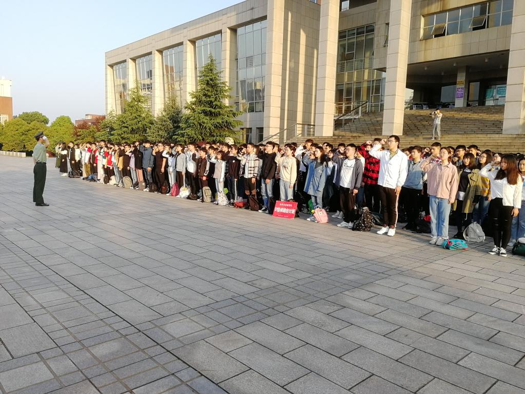 2019年4月8日早上6点55分,在线买世界杯平台经济与管理学院在图书馆前举行了庄严隆重的升旗仪式。学院党委副书记涂道勇,17级辅导员肖翠老师及全体17级学子参加升旗仪式。