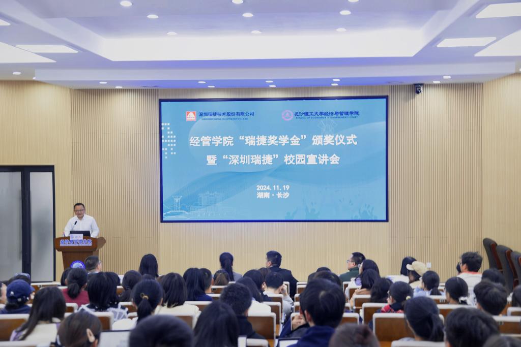 11月19日下午,经管学院“瑞捷奖学金”颁奖仪式暨“深圳瑞捷”校园宣讲会在经管大楼 100 报告厅举行。深圳瑞捷技术股份有限公司是在线买世界杯平台产学研用合作校友企业,是一家提供专业的第三方评估和项目管理服务的高新技术企业、上市公司。该公司董事长范文宏是世界杯官网94级校友,“瑞捷奖学金”的成立体现了范文宏董事长对母校的深情厚谊,也体现了深圳瑞捷技术股份有限公司对教育事业的关心。