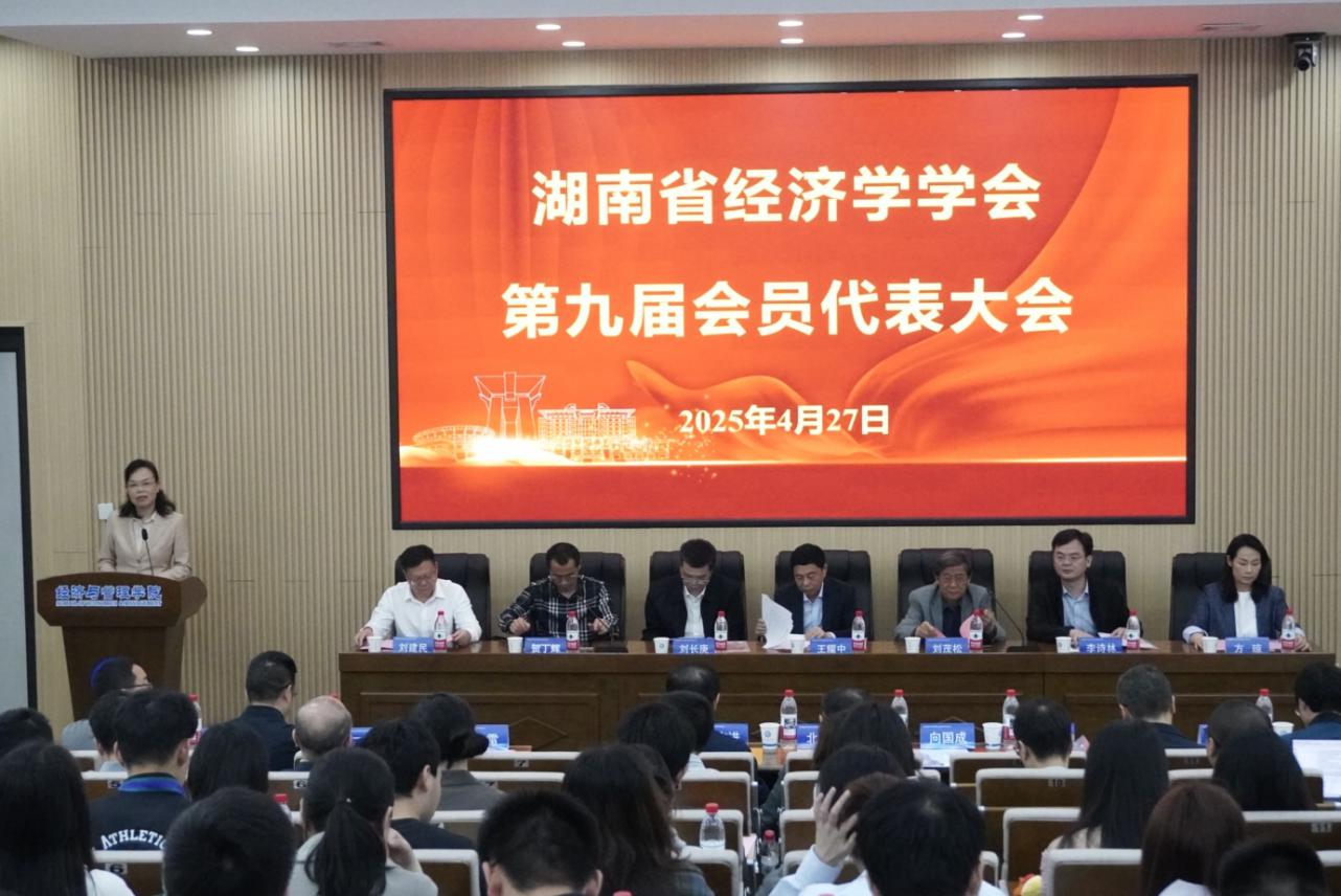 2025年4月27日上午,湖南省经济学学会第九届会员代表大会在在线买世界杯平台(金盆岭校区)经管大楼100报告厅隆重召开。来自全省数十所高校、科研院所和相关单位的会员代表齐聚一堂,共襄盛会。本次大会由第八届理事会执行理事长陈银娥教授主持。