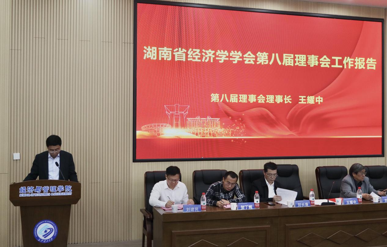 湖南省民政厅社会组织管理局副局长李诗林宣读了《关于同意湖南省经济学学会换届的批复》,对本次换届工作给予充分肯定并提出指导要求。随后,第八届理事会理事长王耀中教授作《第八届理事会工作报告》,全面总结了过去一届学会在学术研究、交流合作、服务社会等方面取得的重要成果,对省民政厅、社科联,以及各会员单位、挂靠单位和广大会员的关心和支持表示感谢。