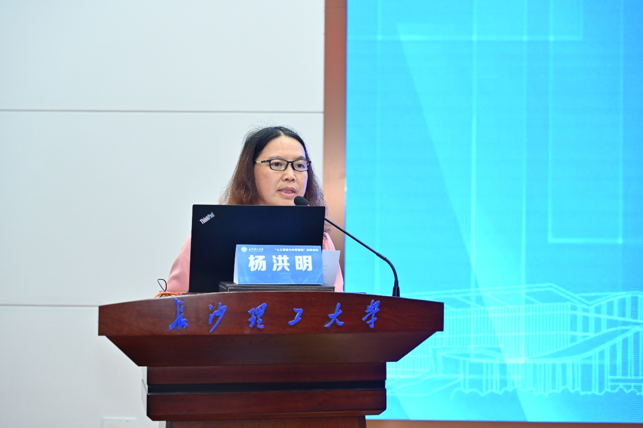 论坛开幕式由经济与管理学院院长彭新宇主持。开幕式上,杨洪明代表学校致辞,介绍了学校发展情况、经管类学科建设及人才培养情况。她指出,在数字经济蓬勃发展的时代背景下,探索人工智能与共同富裕的深度融合,是响应国家重大战略需求、顺应时代使命、解决社会发展不平衡不充分问题的重要课题。