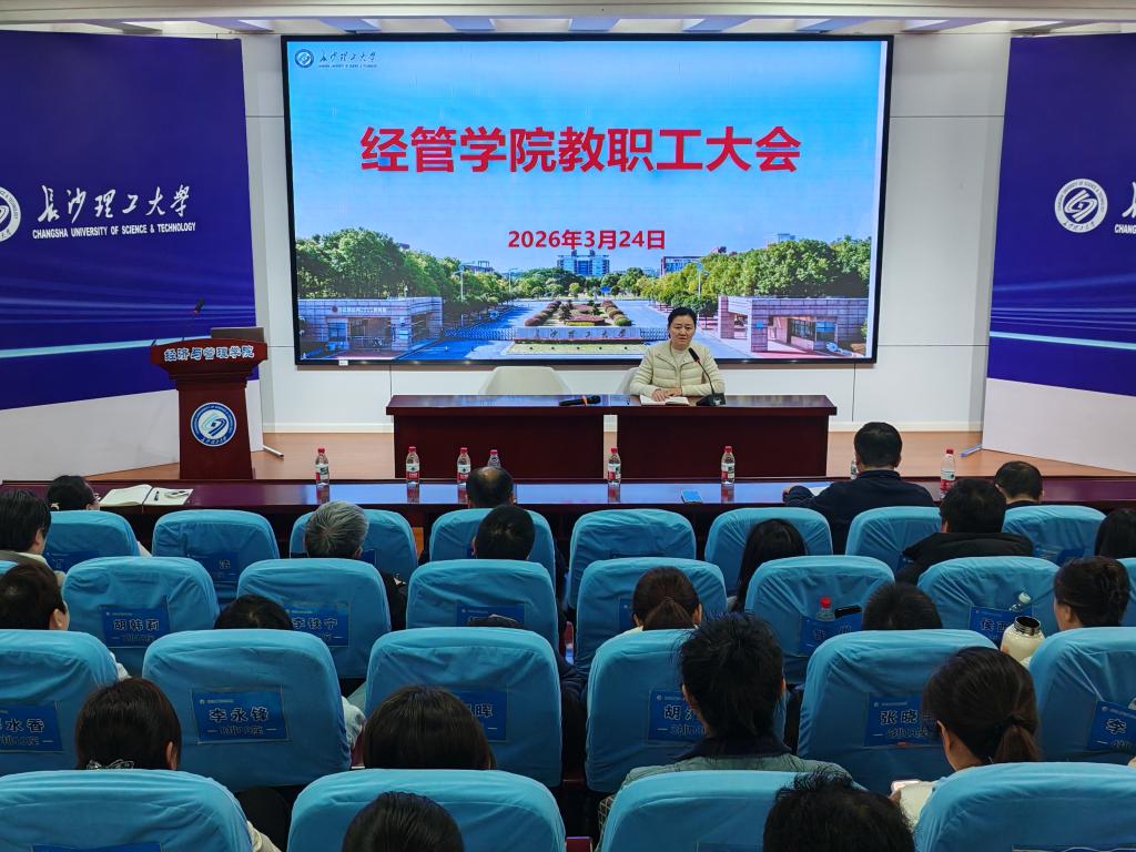为统一思想、凝聚共识,扎实推进新学期各项工作高质量开展,3月24日下午,经管学院召开新学期教职工大会全面部署2026年重点工作。会议由院党委书记马丽主持,学院党政班子成员及教职工参加。