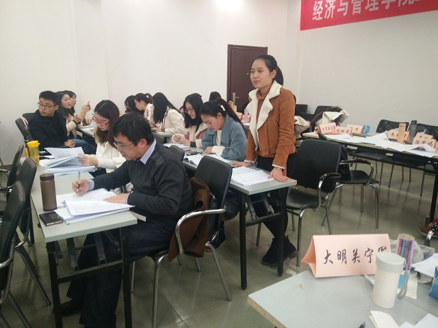 12月25日上午,在金盆岭校区7教109室,由经济与管理学院财会系主任王治教授主讲的《工程经济学》举行了一场形式新颖的翻转课堂。本次翻转课堂的主题是“中交集团海外项目投资战略案例分析”,以中交集团海外投资项目为对象,对其投资效益和风险防控进行分析。本次翻转课堂还特邀了2017年湖南省高校MPAcc企业案例大赛冠军队队长甘葳凝同学作为评委参加。30名方向班学员作为课堂的主导者分为五个小组,并分别以我国历史上最强大的五支军队命名,即东晋北府军、西魏秀丽军、大唐玄甲军、大宋岳家军和大明关宁军。整个翻转课堂分为小组PPT展示、评委点评、提问互动等环节。各小组展示各具特色、评委点评精准到位、提问互动紧张激烈,整个课堂掌声不断,精彩纷呈。