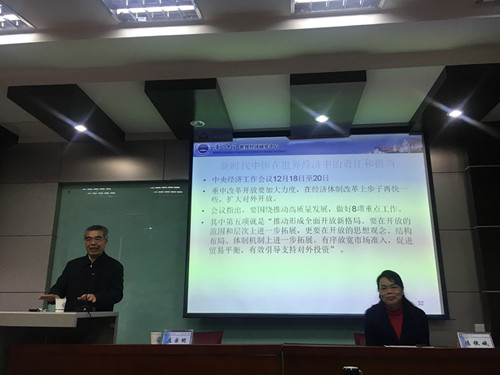 12月28日上午,厦门大学校长助理、博士生导师、著名世界经济问题专家庄宗明教授应邀来我院进行了题为“新时代的中国经济与世界经济”的专题讲座。讲座在金盆岭校区7号教学楼举行,学院部分教师和研究生聆听了讲座。