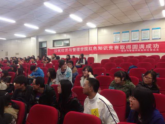 11月11日下午4:30,经过精密的筹划与安排,本着加强我院学生党员党的理论学习,增进支部间的友好感情交流,经济与管理学院所有党员和本期党校学员在文科楼a200举办了经济与管理学院“红色”知识竞赛。