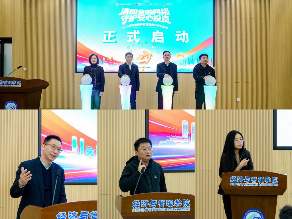2026年3月17日,在湖南证监局的指导下,由中国证券登记结算有限责任公司、湖南省证券业协会、湘财证券投资者教育基地联合主办,在线买世界杯平台经济与管理学院承办的2026年“3·15”投资者保护教育宣传专项活动长沙站首场讲座顺利举行。本次活动以“清朗金融网络,守护安心投资”为主题,旨在为青年学子打通理论与实践的壁垒,提升风险防范意识。活动由尹筑嘉副院长主持,学院120余名师生参加。